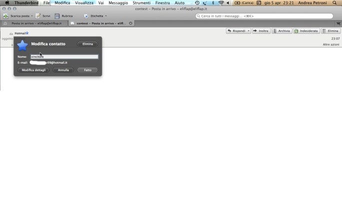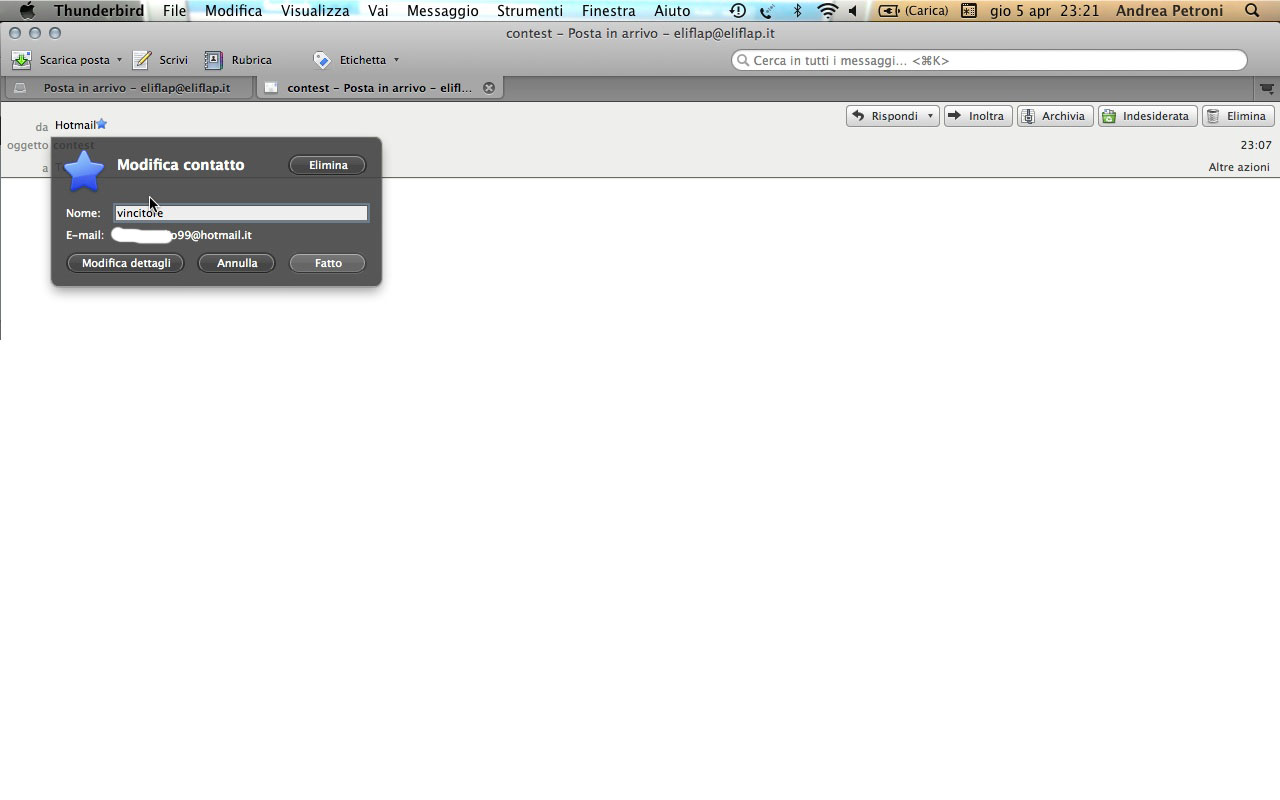 … il vincitore 6 aprile 2012 da eliflap ecco il vincitore, che ha ricevuto la mail di conferma . here is the winner , already received a confirmation mail. Condividi: Fai clic per condividere su X (Si apre in una nuova finestra) X Fai clic per condividere su Facebook (Si apre in una nuova finestra) Facebook Fai clic per condividere su WhatsApp (Si apre in una nuova finestra) WhatsApp Altro Fai clic per inviare un link a un amico via e-mail (Si apre in una nuova finestra) E-mail Mi piace Caricamento...