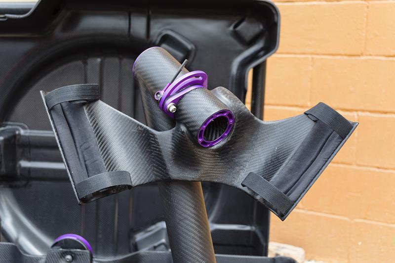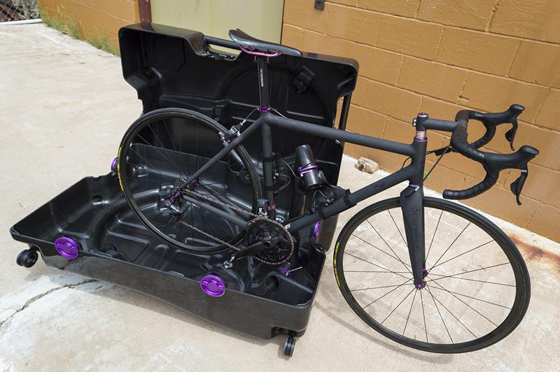 50.000 dollari … tanto è costato questo prototipo di travel case in carbonio che incorpora anche un braccio brandeggiabile , che si chiude con uno sgancio leggero, che è sostegno alla bici da chiuso e supporto manutenzione da case aperto … per un acquirente svizzero da Fairwheels Bikes