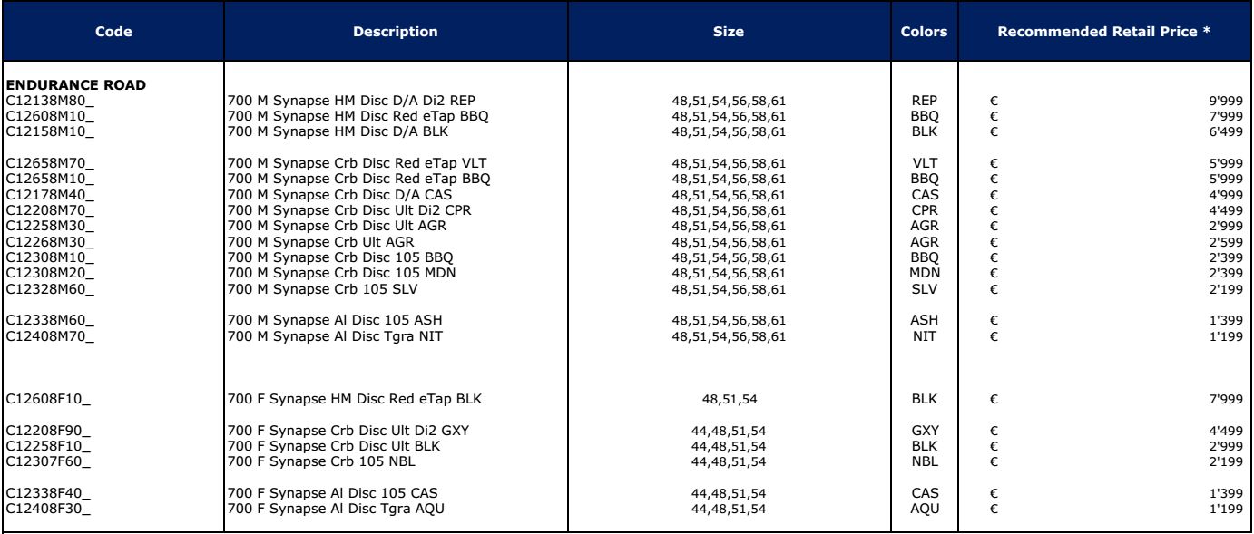Cannondale_2018_Synapse_price_list Condividi: Fai clic per condividere su X (Si apre in una nuova finestra) X Fai clic per condividere su Facebook (Si apre in una nuova finestra) Facebook Fai clic per condividere su WhatsApp (Si apre in una nuova finestra) WhatsApp Altro Fai clic per inviare un link a un amico via e-mail (Si apre in una nuova finestra) E-mail Mi piace Caricamento...