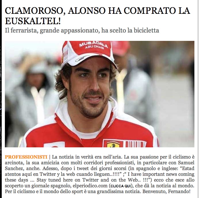 Alonso è il nuovo prorpetario della squadra Euskatel